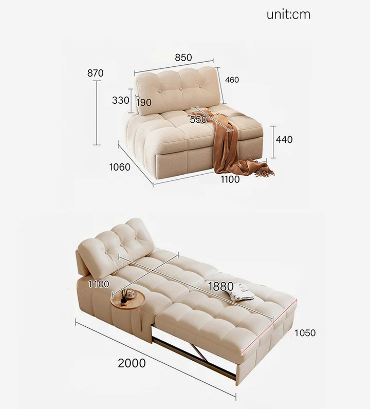 Su diseño plegable y compacto ocupa menos de 1.1 m², ideal para optimizar espacios pequeños. Colócalo en tu recámara, sala o estudio y crea un rincón de confort.