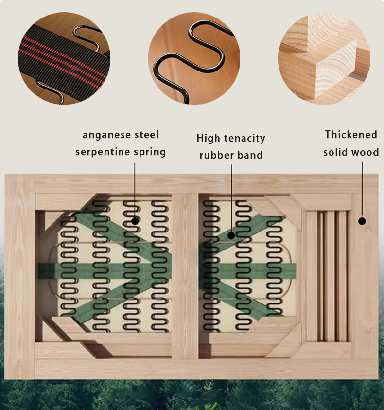 La estructura interna es de madera de pino maciza y cuenta con un sistema de resortes en zigzag reforzados que evitan que el sofá se hunda. Soporta sin problemas hasta 200 kg de peso.
